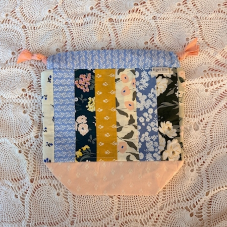 Drawstring Knitting Bag – Perfect for Sock KAL – Stripe Floral OOAK