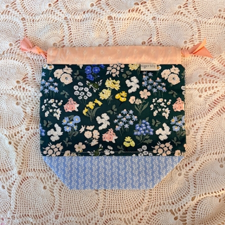 Small Knitting Project Top Drawstring Bag, Yarn Sack – featuring the Art Gallery Floral Fabric , fully lined inside and closure with twill tape drawstrings. Handmade by Tiger Lily.