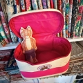 Small option – cute Train case made from canvas linen. The coordinating zipper goes all the way around the sides and front for full access. The inside top has mesh pockets for additional storage space and features pink nylon lining.  * Dimensions: 8.5″ x 5″ x 6″ *