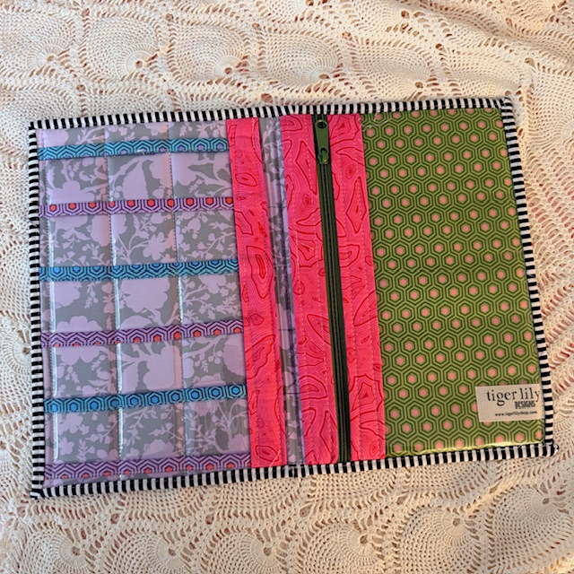 - Floss keeper featuring vinyl slots for standard size floss bobbins with bias tape binding along edge
