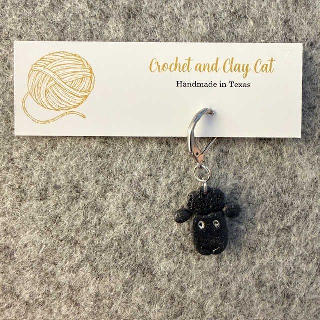 A fun and quirky black sheep polymer clay stitch marker. The perfect little piece of fun to mark your knitting & crochet work.