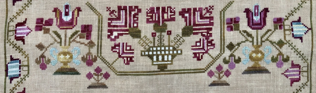 ✿ An EXCLUSIVE Tiger Lily inspired adaptation of an antique sampler from My Sisters Sampler. This collaboration has been in the works for over a year, and I’m honored the sisters (Rebecca & Beth) are allowing me to adapt it. The sampler measures 222 x 191 (The full size true antique sampler reproduction will be released at Nashville Market 2026 from My Sisters Sampler and measures approximately 222 x 250)