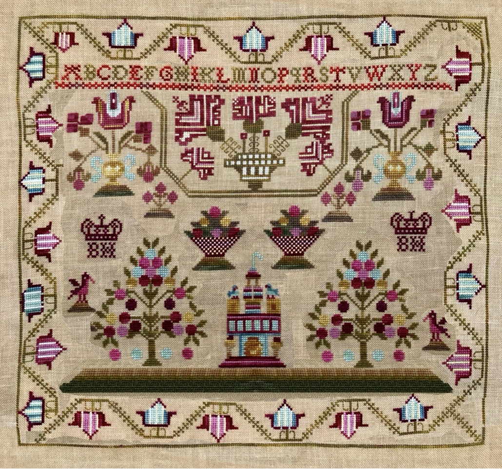 1. Full Kit – Sampler Chart, Gloriana Silk Pack, Your Choice of Linen, Curated SAL Notions